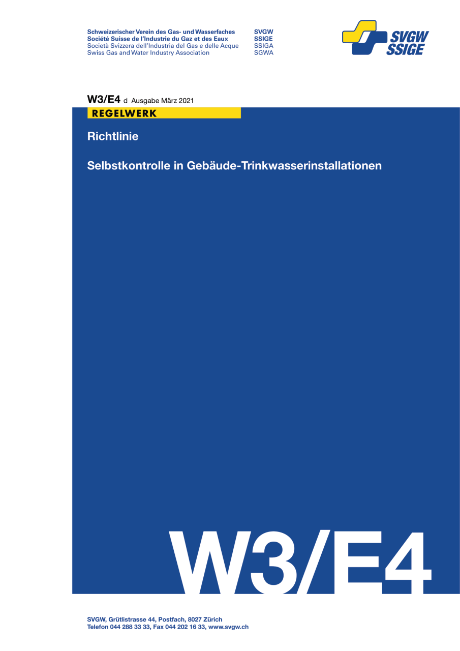 SVGW-Richtlinie für Trinkwasserinstllationen W3 Ergänzung E4
