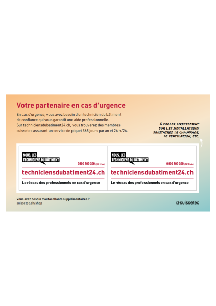 Set d'autocollants "techniciensdubatiment24.ch" à remettre à vos clients