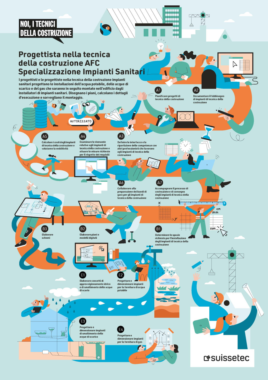 Cartellone dell'ufficio per Progettista nella tecnica della costruzione impianti sanitari AFC (Formato A0)